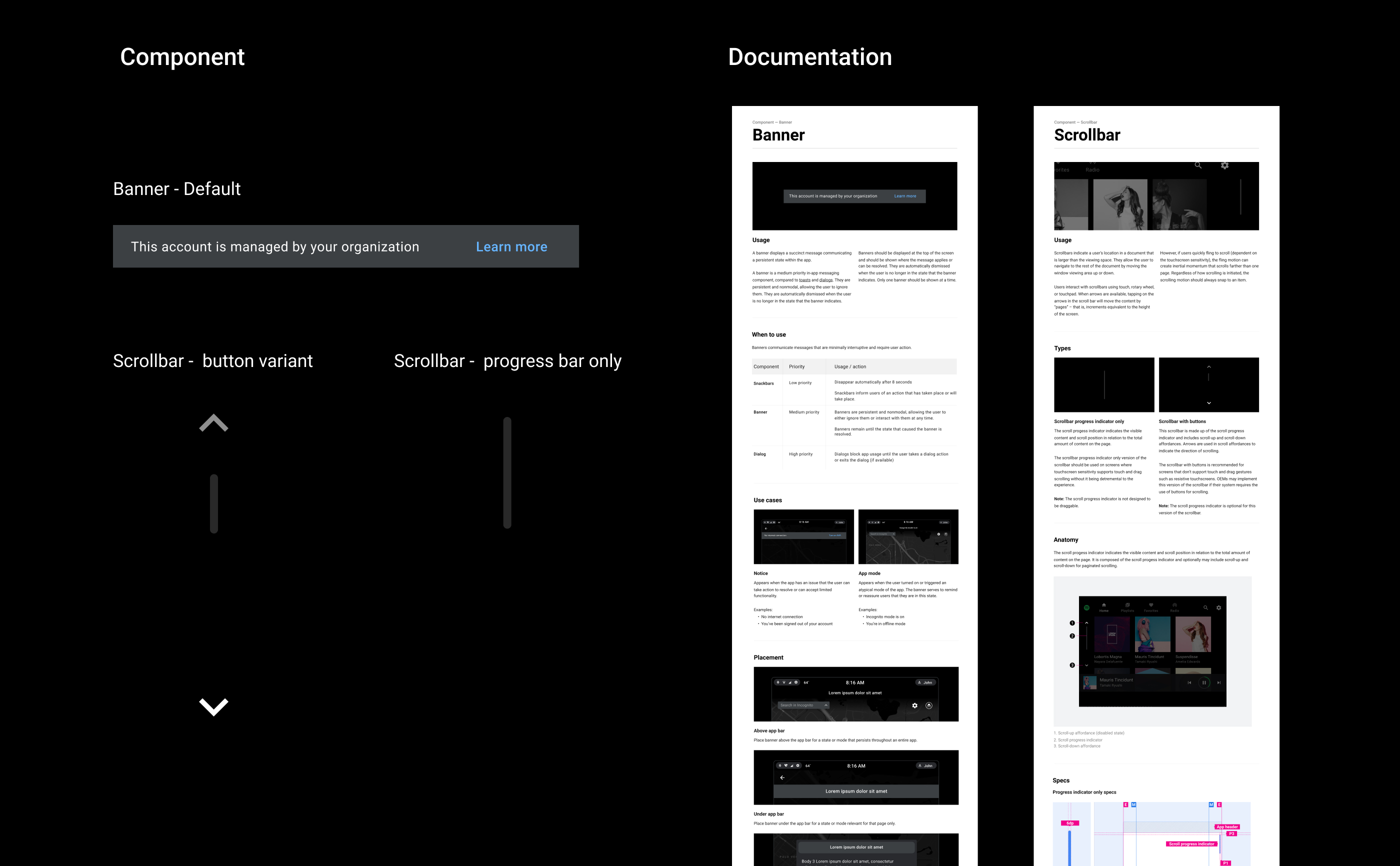 I worked as the primary contributor on the Android Auto team to create our design system, collaborating with designers on the Android Automotive OS (AAOS) team to organize, and propose new components. I refined and optimized base elements, components, and screens to build out the AAOS design system. With help from UX writers, I was able to create documentation to help designers from first-party and third-party partners. I created and maintained a fully working Figma library for internal designers and external partners.