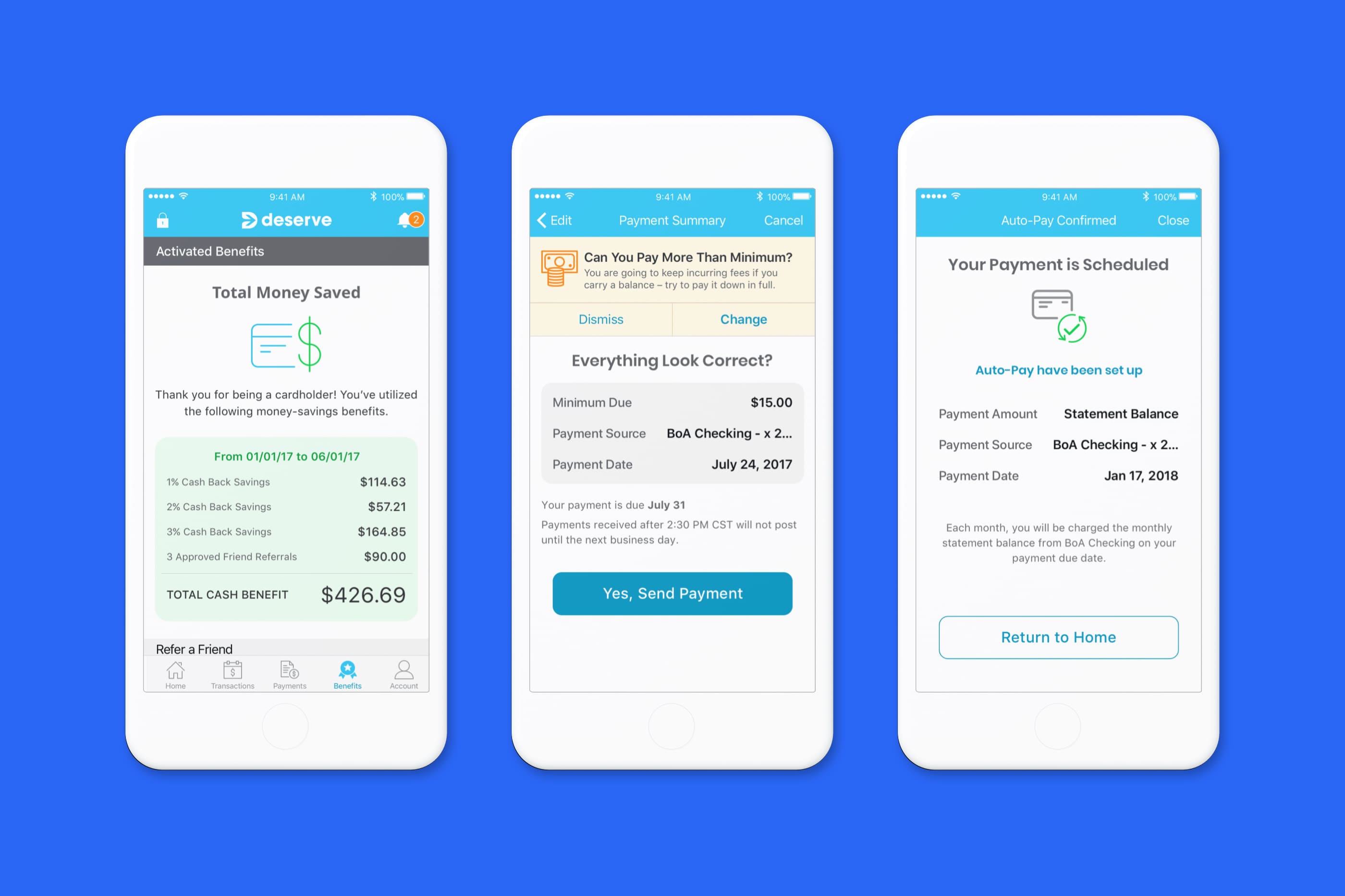 iOS native app design for Deserve; a credit card fin-tech start-up, they provide credit cards to individuals without a credit history. The design of the app is the next step in expanding the number of ways that users can check on their current credit usage, pay their statement and claim rewards. Additionally the app provides tips to help users understand what types of behavior affects their credit score and encourages them to engage in positive behavior.